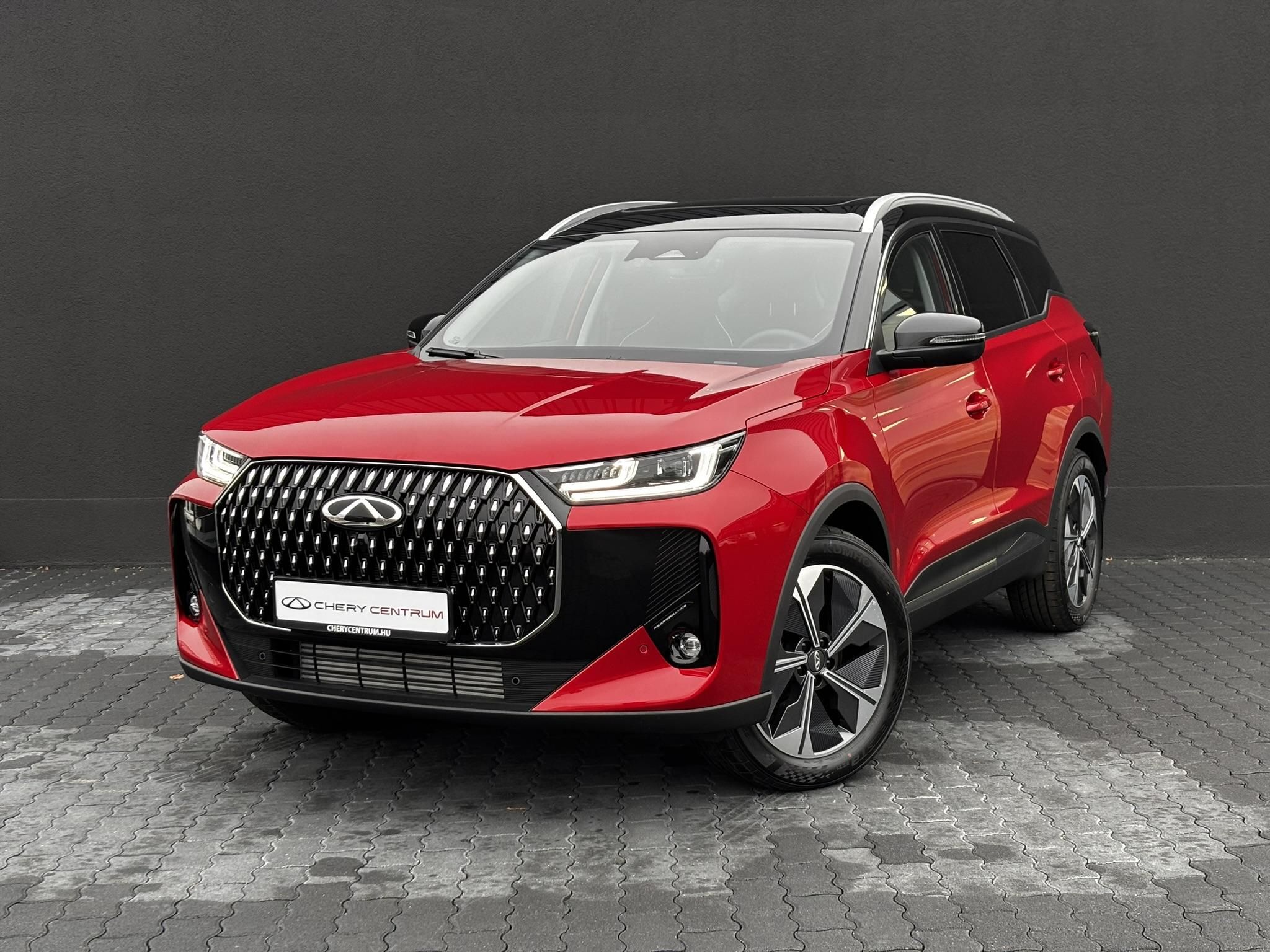 AZ AKCIÓS VÉTELÁR KIZÁRÓLAG A KÉSZLET EREJÉIG ÉRVÉNYES! Új autó készletről, 7 év garanciával MOST BOMBA ÁRON a Chery Centrumtól! A részletekért és az egyéb lehetőségekről érdeklődjön! Tiggo 7: 1.6 T-GDI négyhengeres 147 LE-s (275 Nm maximális nyomaték) Turbo benzinmotor, 7 fokozatú duplakuplungos (DCT) automata váltó. Piros - fekete tető metálfényezés(fényezés feláras). Comfort felszereltség: Automata váltó (7DCT), Dupla 12,3-os kijelzők, Vezeték nélküli Android Auto és Apple CarPlay, Automata kétzónás légkondicionáló, 6 irányban elektromosan állítható vezetőülés, 18 Könnyűfém keréktárcsák, Többlengőkaros hátsó felfüggesztés, 26 Vezetéstámogató rendszer. FULL LED fényszóró (Nappali, Hátsó, Ködlámpa), Első & Hátsó ködlámpa, Automatikus fényszóróvezérlés, Hátsó tetőspoiler féklámpával, Tolatókamera és radar dinamikus segédvonalakkal, Audiorendszer 6 hangszóróval, Automata ablaktörlők. Intelligens kulcs (Indítás és egyszerű nyitás & zárás), Multifunkcionális bőr kormánykerék, 4 irányba állítható kormánykerék, Szövet üléskárpit, pótkerék stb. Várjuk tesztvezetésre! A képeken látható gépkocsi felszereltsége eltérhet a hirdetésben szereplő gépkocsi tényleges felszereltségétől!