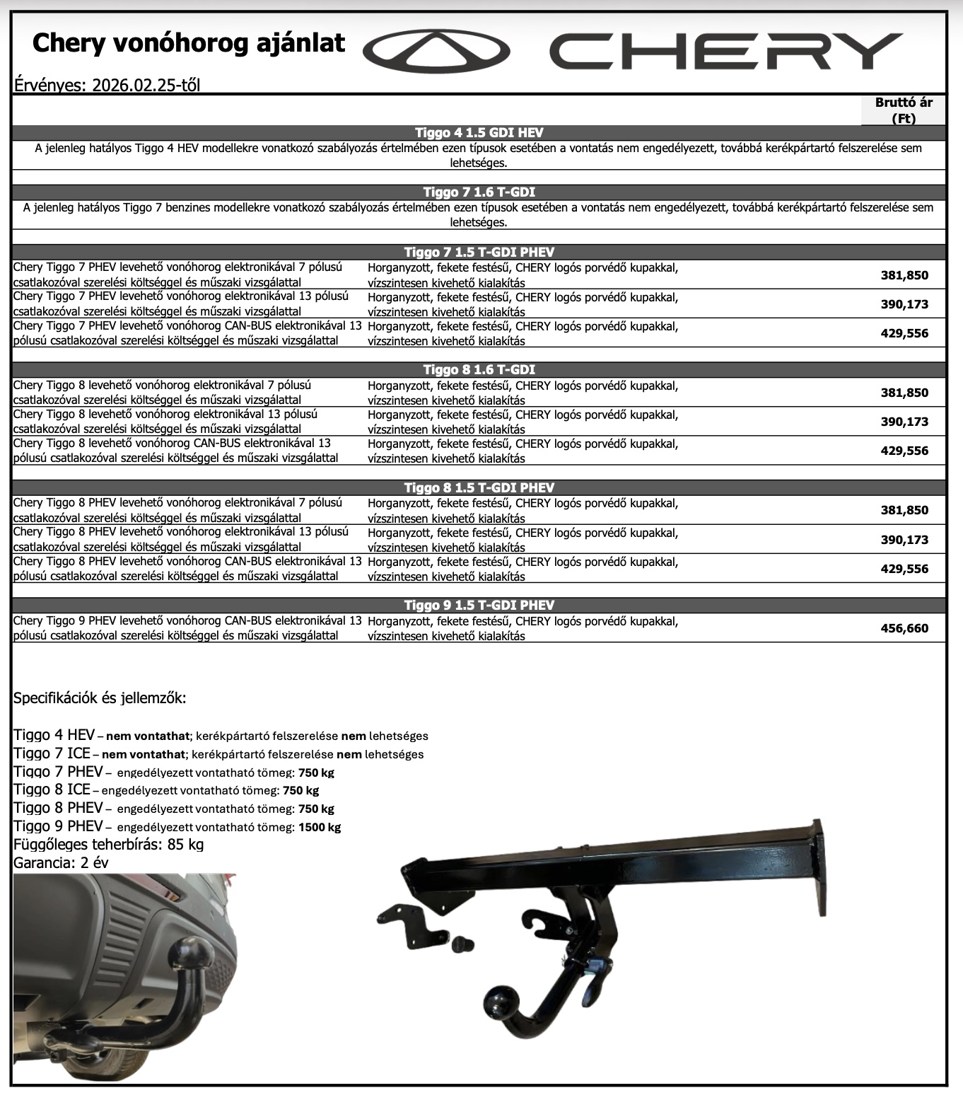 TIGGO modellekre 7 év/150.000km garanciát biztosítunk.